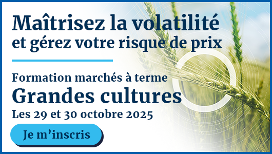 Les cours ont enregistré hier une forte amplitude de variation. En blé, l’échéance Décembre 2025 est venue tester en séance le niveau de 185 €/t, atteignant ainsi un nouveau plus bas de contrat, avant de rebondir et de clôturer en hausse par rapport à la veille. En maïs, les prix ont également reculé, repassant brièvement sous le seuil des 180 €/t. L’échéance Novembre 2025 a toutefois terminé la séance à 181 €/t, ne concédant qu’un léger repli par rapport à la veille.